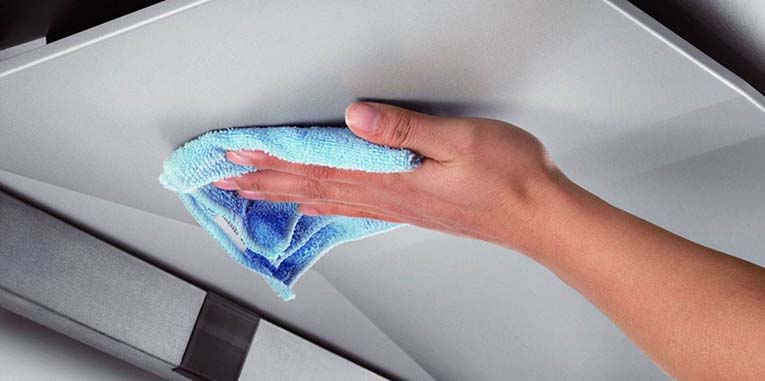 5、用抹布揩凈吸氣口周圍、機(jī)殼表面及燈罩等處。還有記得要將油煙機(jī)盒清洗干凈。