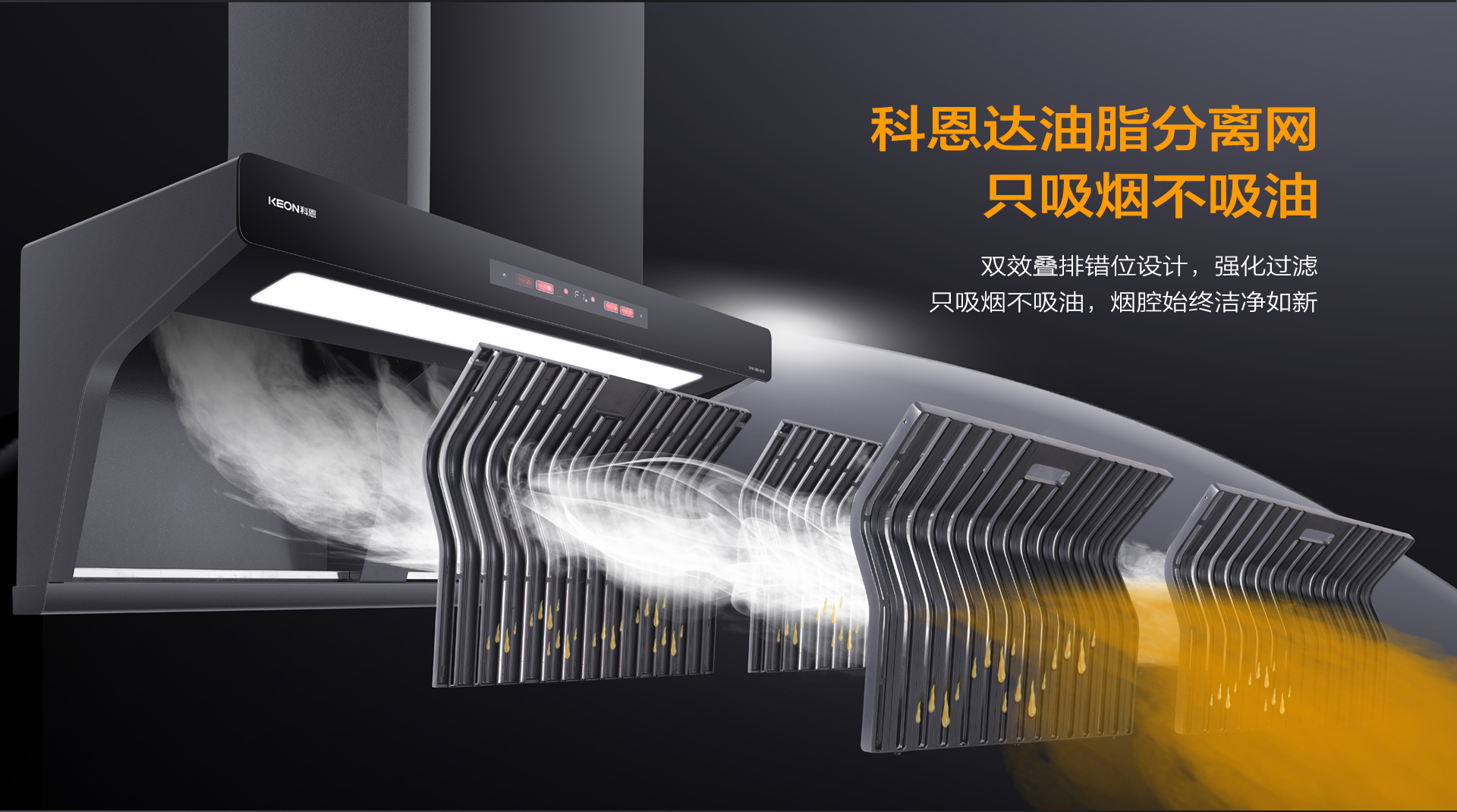 2023年,科恩免清洗煙機問世,科恩達網(wǎng)板再添核心技術(shù),科恩達油脂分離網(wǎng)就此誕生。科恩達油脂分離網(wǎng)采用易潔太空壓鑄鋁材,經(jīng)過酸洗-噴砂工藝加之特氟龍噴涂最后高溫?zé)Y(jié),不僅不沾油、易清潔更好打理。其采用獨特的多層疊排U型錯層結(jié)構(gòu)設(shè)計,實現(xiàn)油脂分離度高達96%以上(第三方權(quán)威機構(gòu)測定),它在高效解決油煙油脂分離和冷凝的同時,還能很好地起到阻燃隔火的效果,更好解決廚房安全隱患,徹底告別煙機內(nèi)部清洗難題,保證煙機持久大吸力,延長煙機使用壽命。