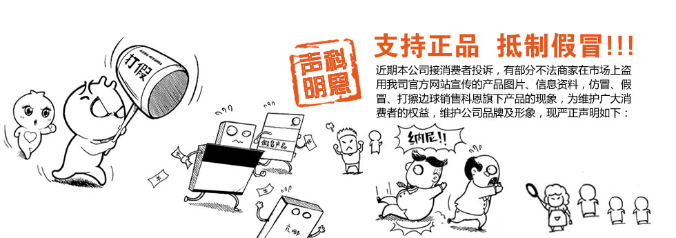特此聲明:本公司對已發(fā)現(xiàn)的偽劣、仿冒和假冒科恩產(chǎn)品逐步曝光,希望廣大消費(fèi)者提高警惕,避免不必要的損失,對提供舉報(bào)線索的用戶本公司給予重獎。