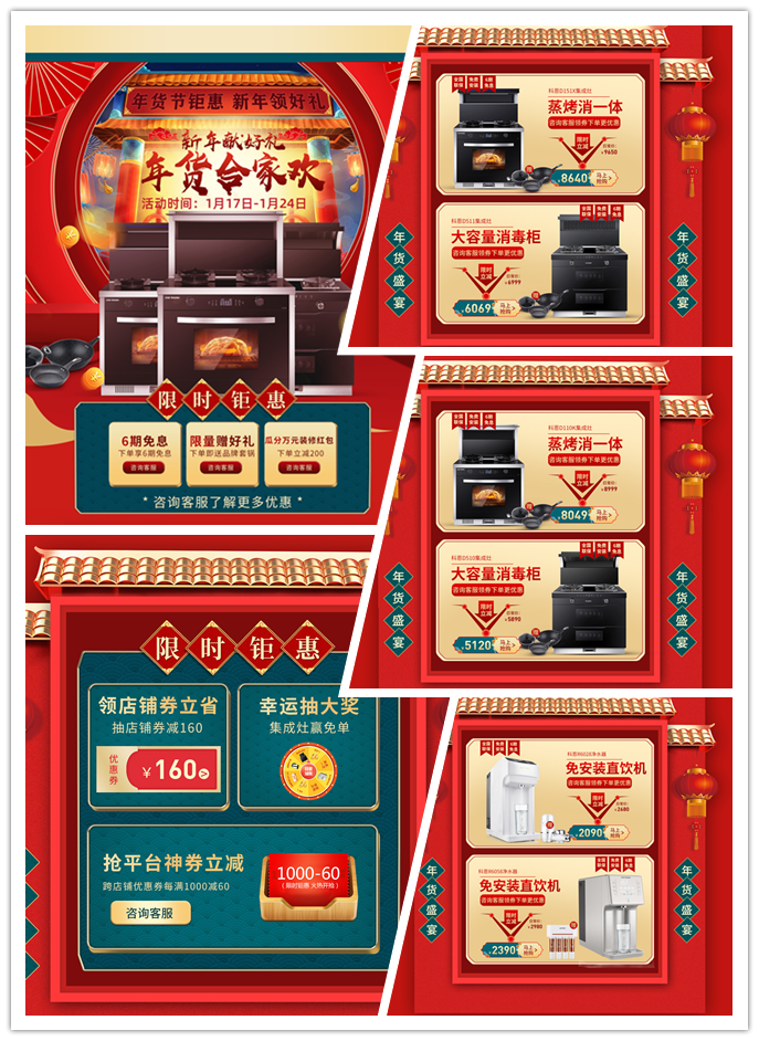 本次科恩廚電年貨節的活動開啟可謂是驚喜多多、誠意滿滿,除了推出多款新品外,還有更多鉅惠活動送送送!下單即送品牌石鍋禮品一份;平臺及跨店鋪優惠券每滿1000減60;白條限時6期免息;瓜分萬元裝修紅包,下單立減200;情誼無價,點我抽獎等多重豪禮送不停!