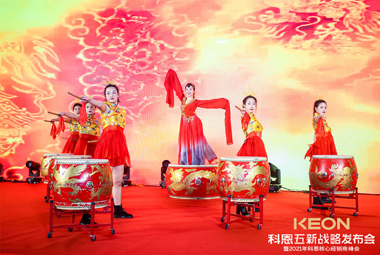 紅衣舞者魚貫而入,精彩鼓舞氣勢恢宏,科恩五新戰略發布會晚宴環節熱烈開場。科恩電器為全國經銷商、媒體伙伴準備了豐盛的答謝晚宴,精致的晚餐、炫目的樂隊表演將晚宴推向了新高潮。