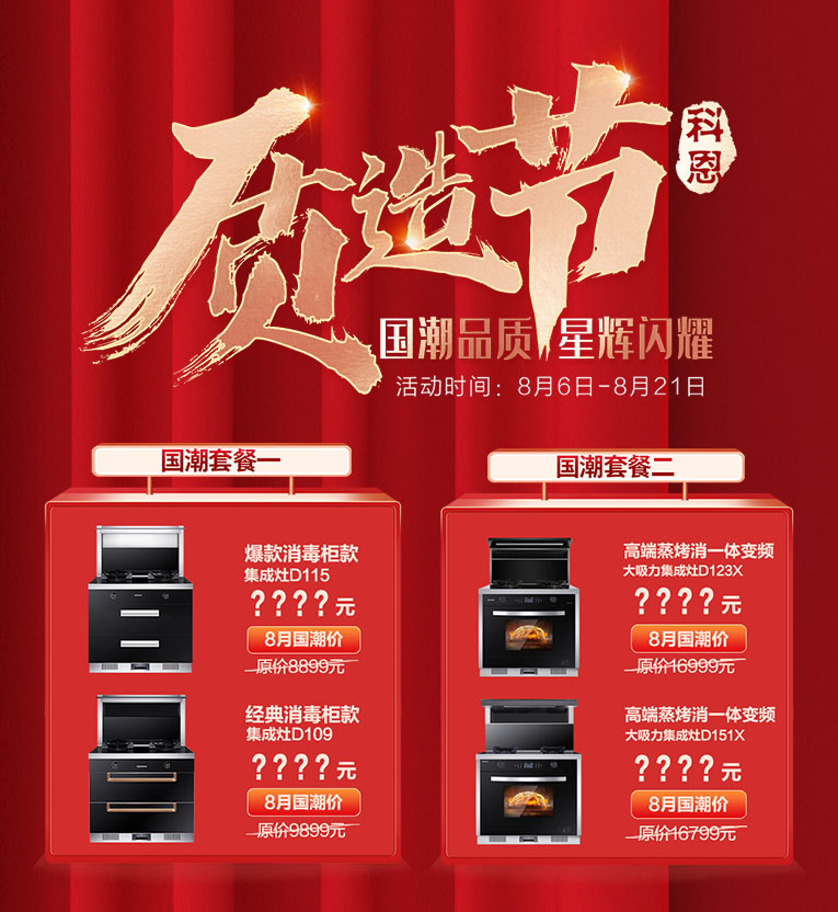 集成灶十大品牌、廚電行業(yè)十大品牌科恩八月質(zhì)造節(jié)大型全國促銷活動強(qiáng)勢來襲,國潮品質(zhì),星輝閃耀,絕對給你想不到的洪荒之“利”!
