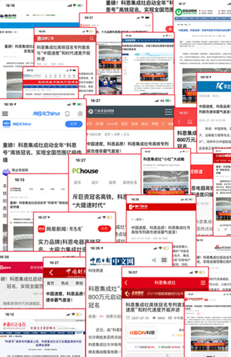 此番科恩集成灶斥資800萬投放高鐵列車,整合全網主流媒體進行針對性內容營銷,以創意廣告和推廣內容,360°全方位品牌曝光,進一步樹立品牌形象,擴大品牌影響力。