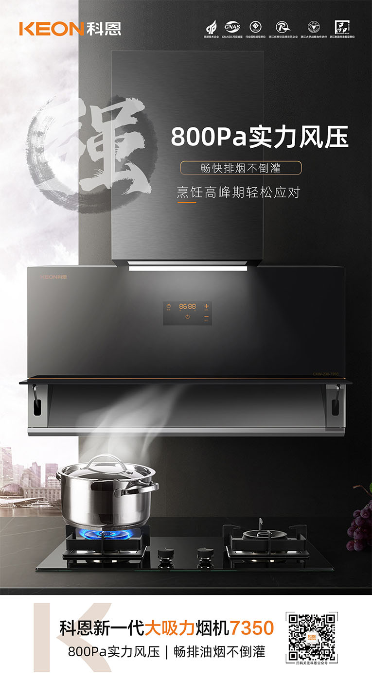 集成灶十大品牌、廚電行業(yè)十大品牌科恩新一代大吸力煙機(jī)7350即將上市,今天就跟隨小編一起,解鎖7350煙機(jī)獨(dú)特魅力。