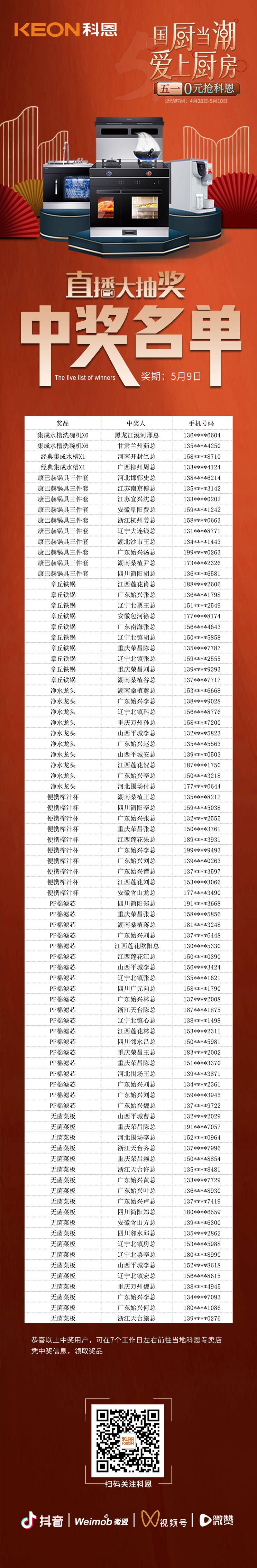 本次0元搶科恩活動已圓滿落下帷幕,接下來,科恩集成灶還將有更多活動福利、大獎等著您,敬請隨時關(guān)注科恩公眾號以及全國科恩門店,期待下次活動,不見不散!