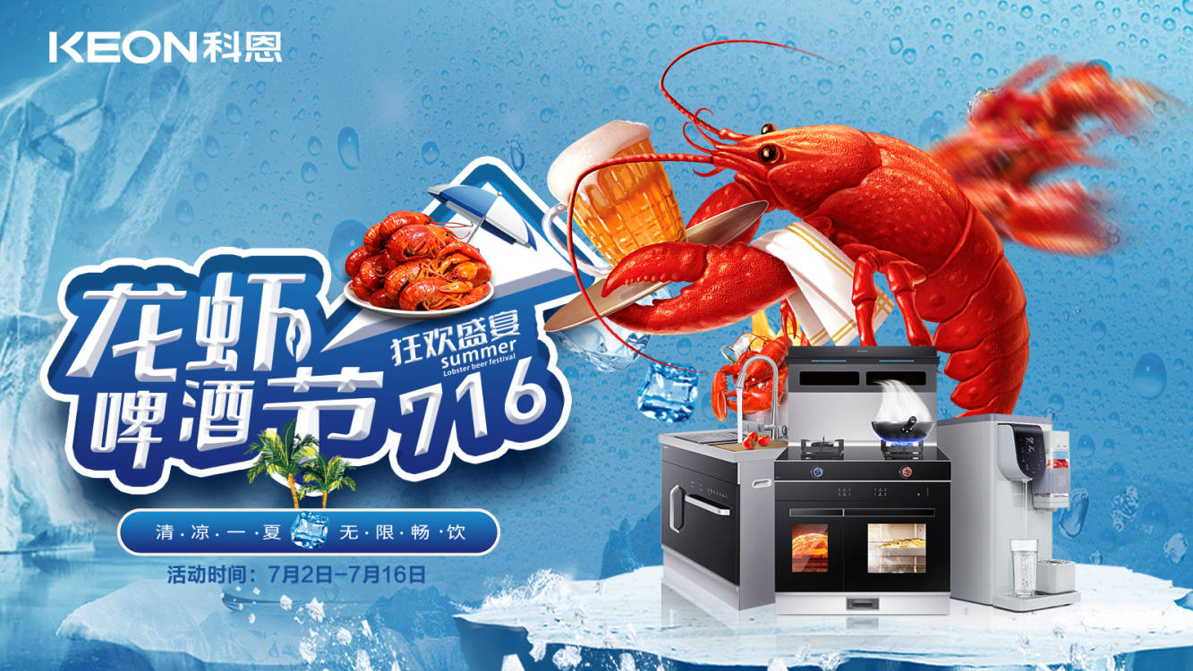618狂歡盛宴的科恩龍蝦美食節還沒過癮?這個七月 ,科恩集成灶繼續為你續上期待已久的夏日限定之旅——科恩龍蝦啤酒節!
