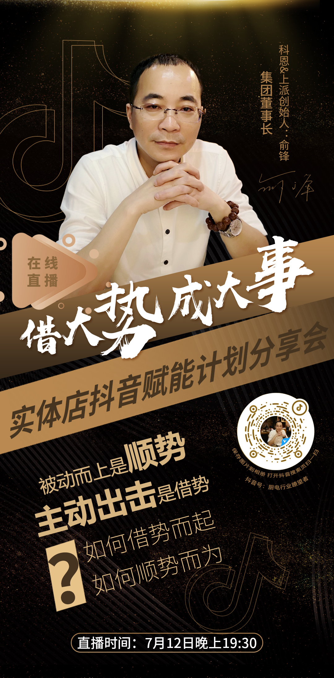 新的時代已然來臨,人貨場關聯重構,亦將是另一個江湖的開啟,你愿不愿意成為那個勇闖天涯,重構江湖秩序的領路人?7月12日晚上19:30, 鎖定抖音直播間,董事長俞鋒親自掛帥,為您傾情分享流量變現盈利密碼!