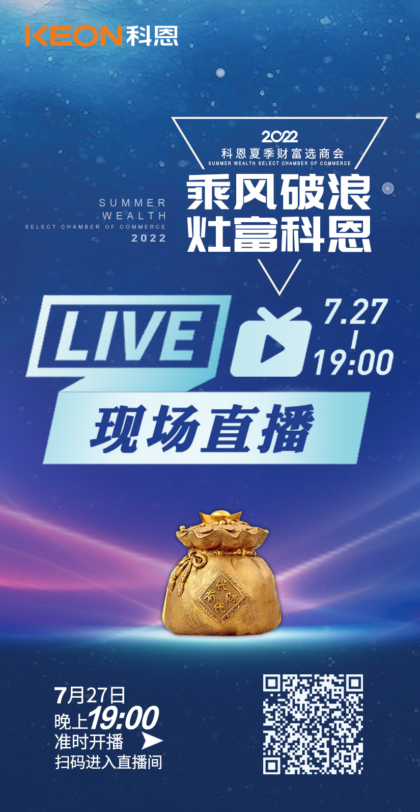 乘風(fēng)破浪·灶富科恩2022科恩夏季財(cái)富選商會(huì)進(jìn)入倒計(jì)時(shí)1天,鑒于疫情呈多點(diǎn)散發(fā)多地頻發(fā)的形式,科恩電器將于7.27晚19時(shí)召開全國(guó)直播線上選商會(huì),用直播打破地域局限,“0距離”交流,足不出戶亦能覓得良機(jī)!