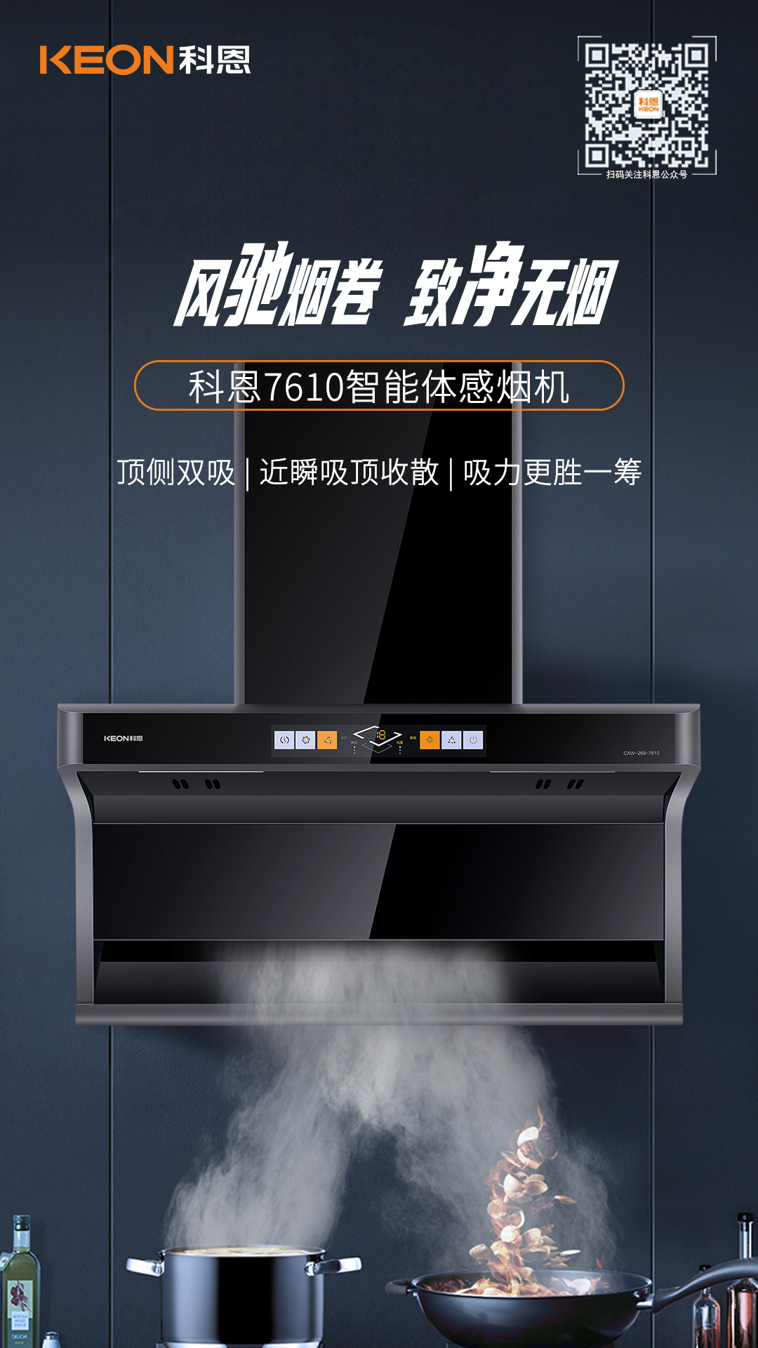 不愛(ài)下廚的理由千千萬(wàn):油煙抽不盡、味道散不出、滿室油膩膩、清潔難打理一定是阻礙我們廚藝進(jìn)階的頭號(hào)勁敵!選擇一臺(tái)好的煙機(jī),下廚煩惱一招便可迎刃而解,科恩7610頂側(cè)雙吸智能體感煙機(jī),上下雙吸組合出擊,配合颶風(fēng)大吸力,將油煙一網(wǎng)打盡,還你清新廚房!