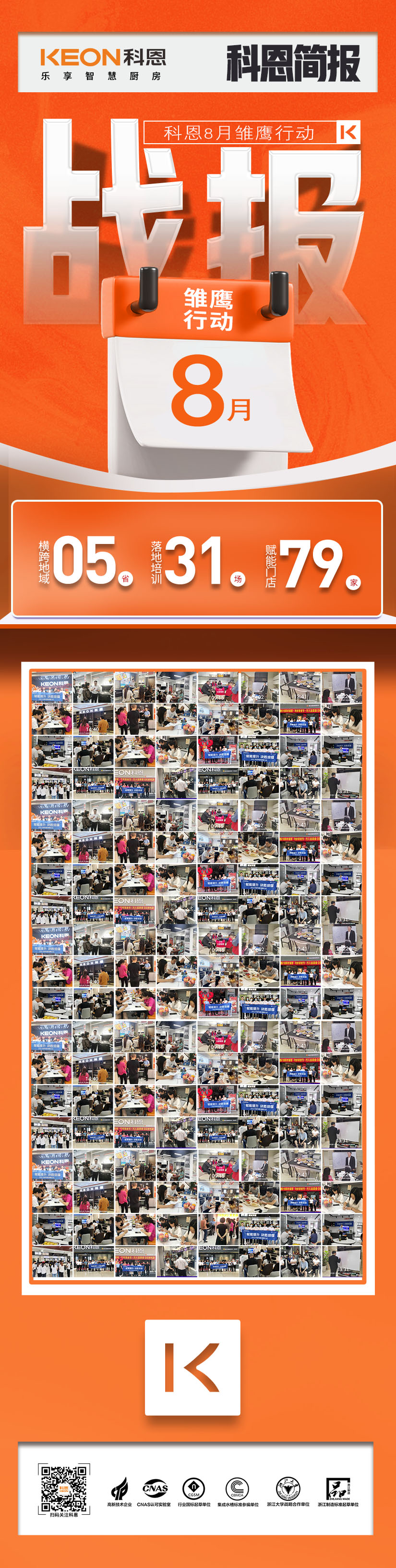 八月火熱收官,科恩集成灶聚焦市場,賦能終端,落地幫扶,力促門店軟實力提質增效,堅定實施“賦能提升,決勝終端”戰略部署,八月優異業績盡入囊中,在這個專屬科恩的勝利時刻,你我一同見證!
