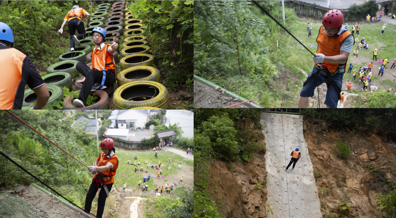 利用繩索一步一步地由巖壁頂端下降到地面,借助專業(yè)繩索器械,利用單繩技術(shù),自己給自己放繩,背朝地面,如同飛虎隊從巖頂降落到地面。巖降屬于高心理挑戰(zhàn)的玩法,體驗與自己抗?fàn)幰约俺晒Φ臉啡ぃ瑥亩匦抡J識自己,增強自信心。科恩家人們分組挑戰(zhàn)巖降,大家披甲上陣,互相鼓勵,不畏艱難,就如在工作中面臨的困難一樣,披荊斬棘,毫不退縮。