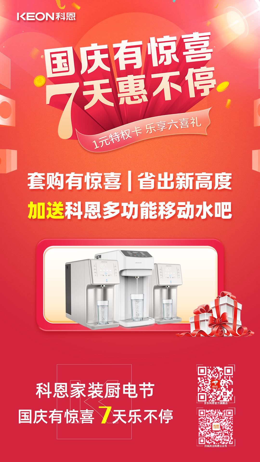 國慶價·提前享,科恩家裝廚電節之國慶專輯——國慶有驚喜,7天惠不停,科恩集成灶帶你嗨購黃金周!