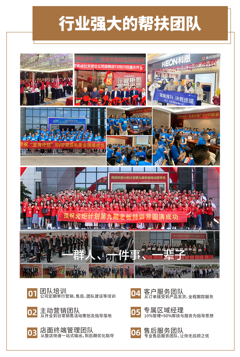 科恩運營中心強(qiáng)商育商團(tuán)隊始終下沉一線、遍布全國,策劃布局雛鷹行動、總裁簽售會、金牌服務(wù)、龍蝦美食節(jié)、金九銀十家裝節(jié)、開業(yè)活動等終端活動,全方位手把手扶持,為終端提供堅實后盾,實現(xiàn)共創(chuàng)共贏。
