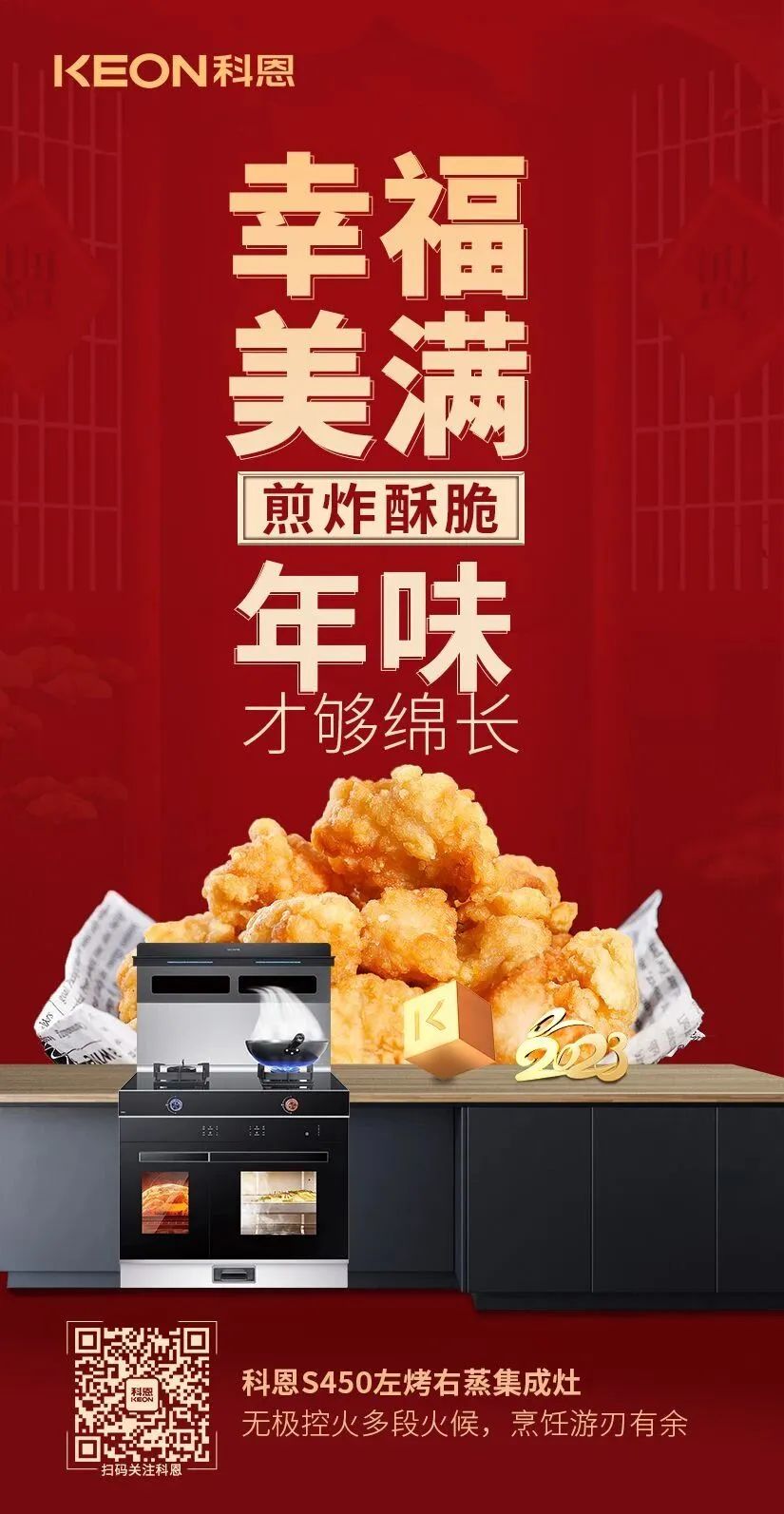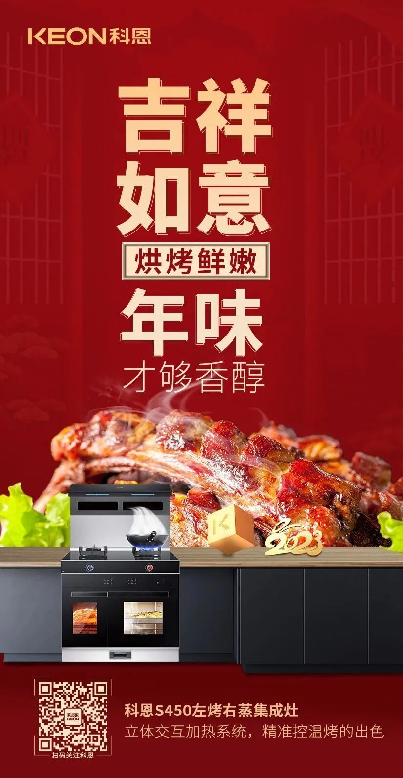 除夕,歲末的最后一天夜晚。在這辭舊迎新的團圓之夜,一定要有一頓闔家歡樂,其樂融融圍坐一席的團圓年夜飯才算圓滿,TA是每年新年前的重頭戲,不但豐富多彩,而且還講究很多寓意,今夜,科恩集成灶為您和家人奉上一桌寓意滿滿的年夜飯,祝您和家人在新的一年瑞兔呈祥,兔來運轉(zhuǎn),兔年大吉,好運連連!