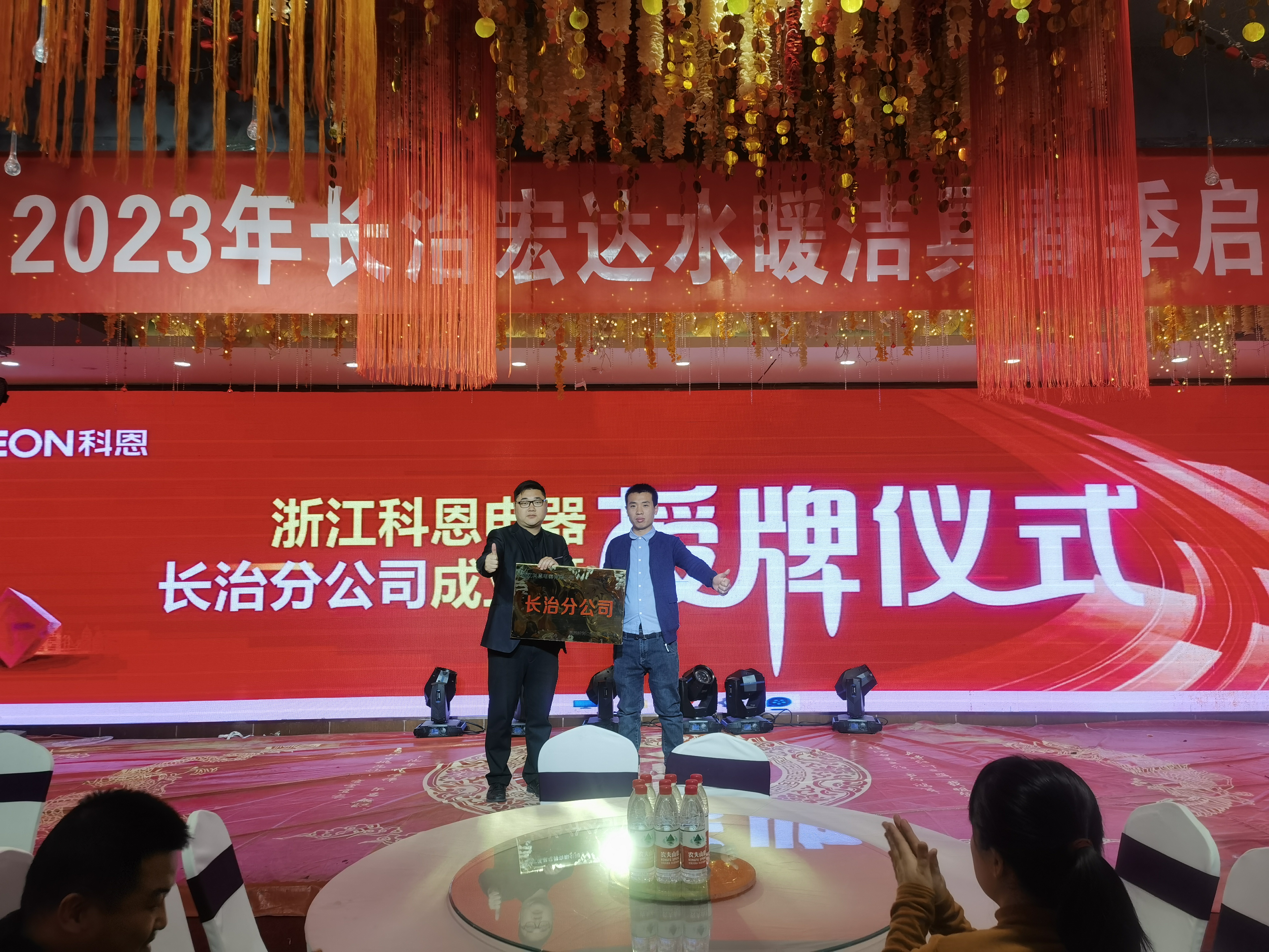 訂貨會上在,浙江科恩電器有限公司山西區(qū)域銷售總監(jiān)陳燊良,代表科恩公司授予長治專賣店“科恩長治分公司”榮譽(yù)。長治分公司是科恩第三家區(qū)域分公司,是科恩強(qiáng)終端、鑄大商道路上又一里程碑!