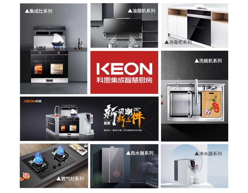 浙江科恩電器有限公司是國(guó)家高新技術(shù)企業(yè)、專利示范企業(yè)、集成灶十大品牌、CNAS認(rèn)可實(shí)驗(yàn)室、高效凈化環(huán)保之星、行業(yè)國(guó)標(biāo)起草單位、集成灶團(tuán)體標(biāo)準(zhǔn)起草單位。科恩集成智慧廚房是一家專業(yè)生產(chǎn)高檔吸油煙機(jī)、燃?xì)庠?、消毒柜、集成環(huán)保灶、移動(dòng)凈水器等一體綜合性廚衛(wèi)電器企業(yè)。