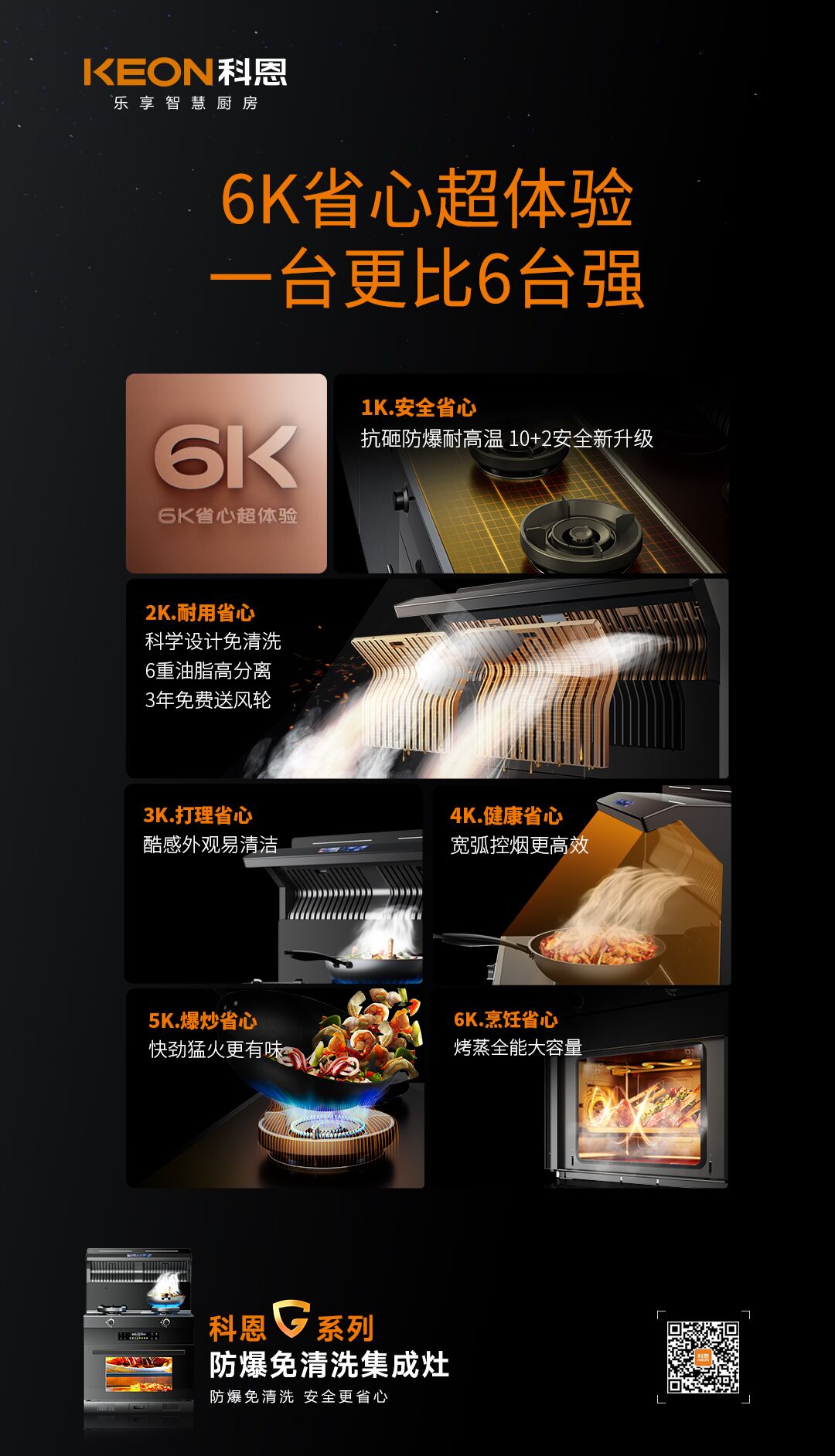 怎么樣的集成灶才能更完美匹配用戶的需求。2023年,科恩研發(fā)了G系列防爆免清洗集成灶,6K省心超體驗,完美適配消費者需求!