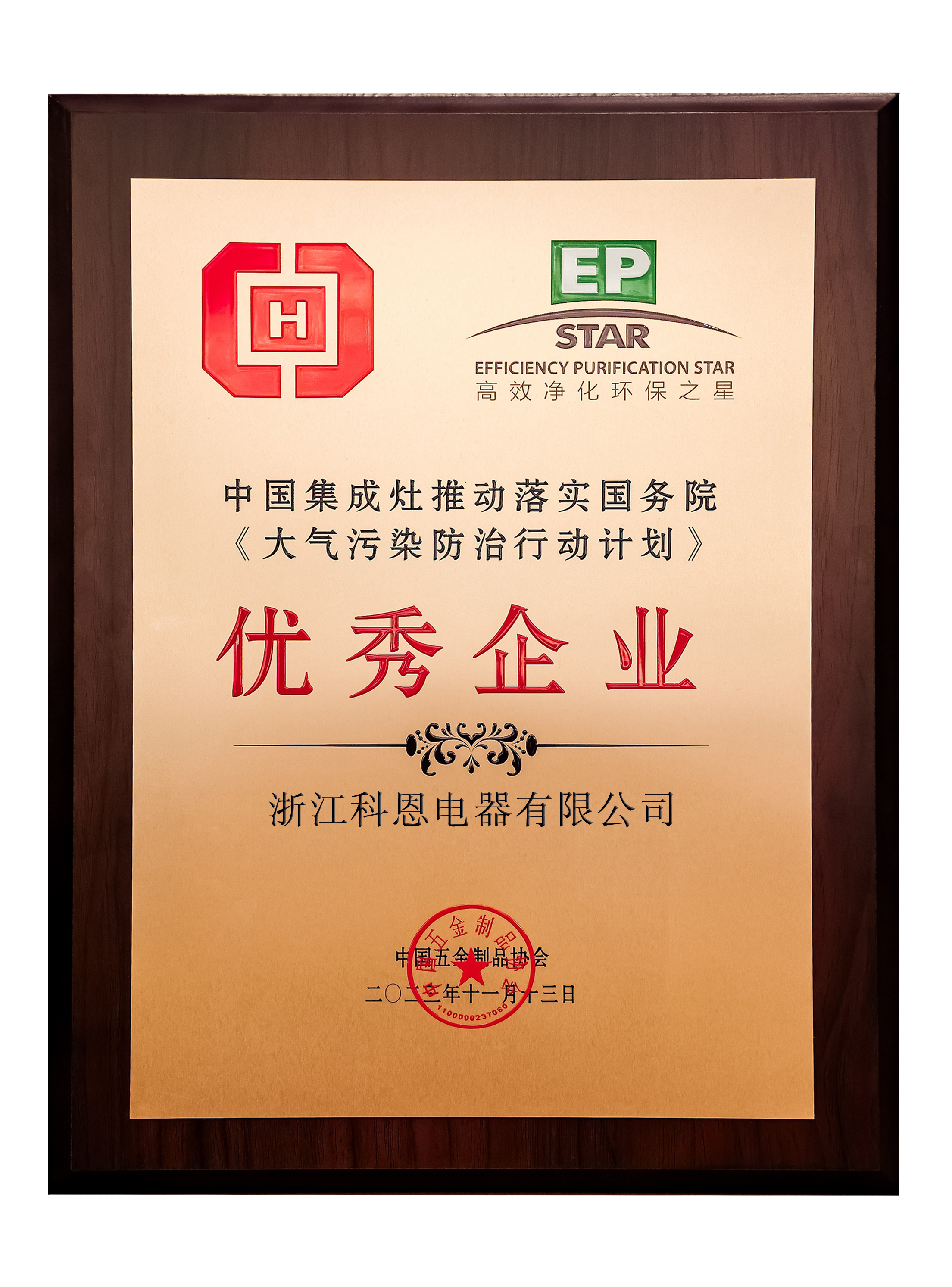2023年11月28日,主題為“煙火人間 凈秀山河”有中國五金制品協(xié)會召開的“中國五金制品協(xié)會吸油煙機(jī)分會·換屆&技術(shù)大會暨‘高效凈化環(huán)保之星’10周年慶典”在杭州隆重舉辦。會上發(fā)布了獲得本屆“高效凈化環(huán)保之星”的優(yōu)秀企業(yè),并向多年來連續(xù)參與此項目并表現(xiàn)突出的企業(yè)給予了嘉獎。科恩再一次榮獲“中國五金制品協(xié)會-理事單位”及“中國集成灶推動落實國務(wù)院《大氣污染防治行動計劃》-優(yōu)秀企業(yè)”!