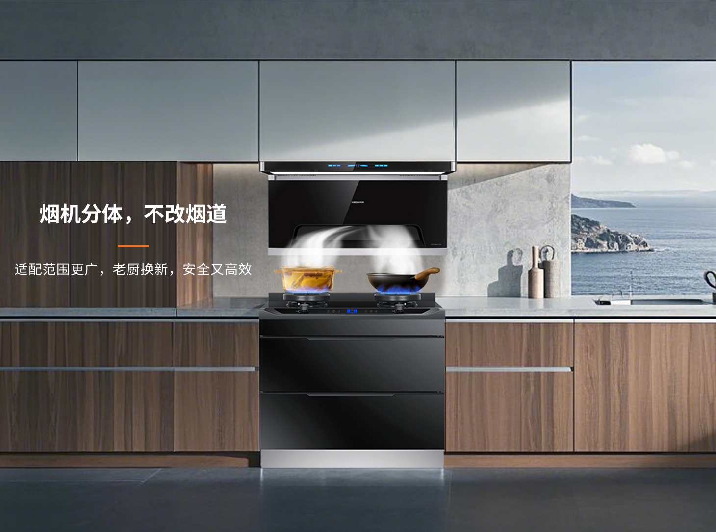 自由適配,破界新生。告別改造施工煩惱,科恩以用戶為中心,讓產品回歸家庭關懷的本質,推出集成烹飪中心p10。依托分體組合設計,油煙向上,不占公共煙道,模塊獨立,上下置換自由,實現新舊廚房無縫銜接