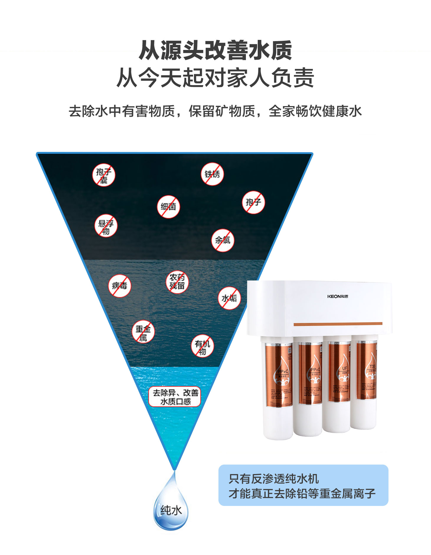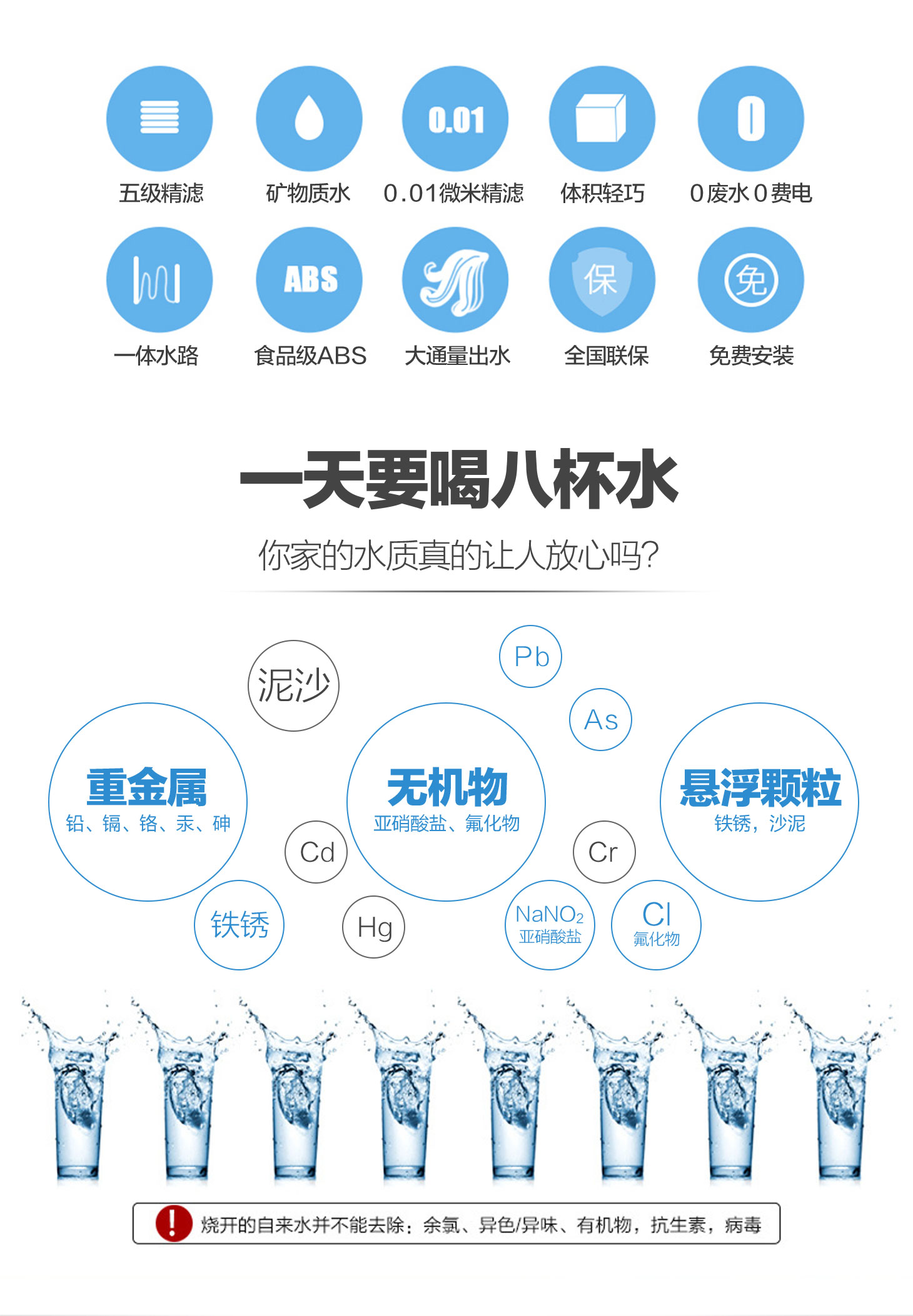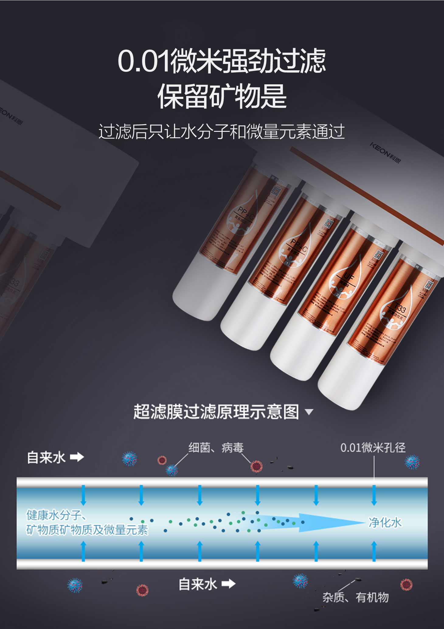 - 四重五級過濾,0.01微米超濾膜去除細菌和病毒。