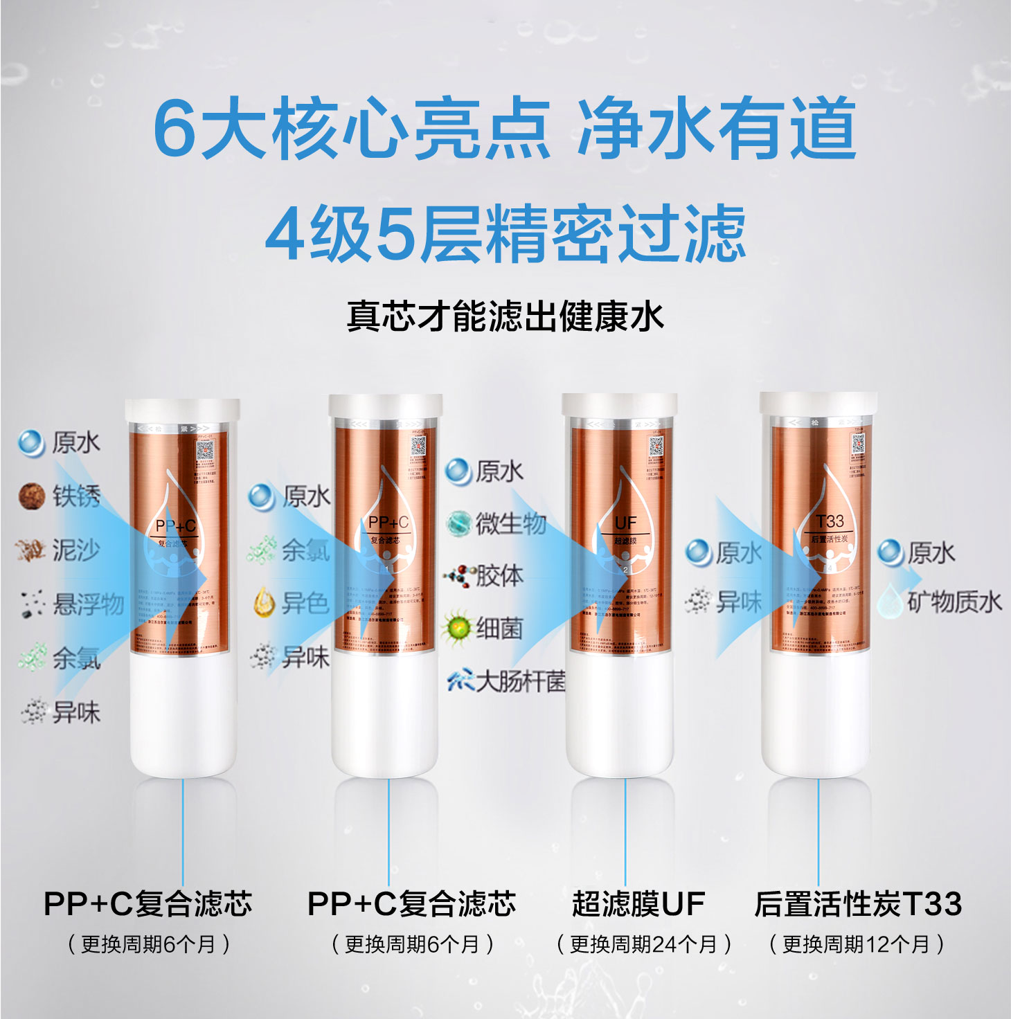 過濾級數(shù):(PP+C)+CTO+UF+T33