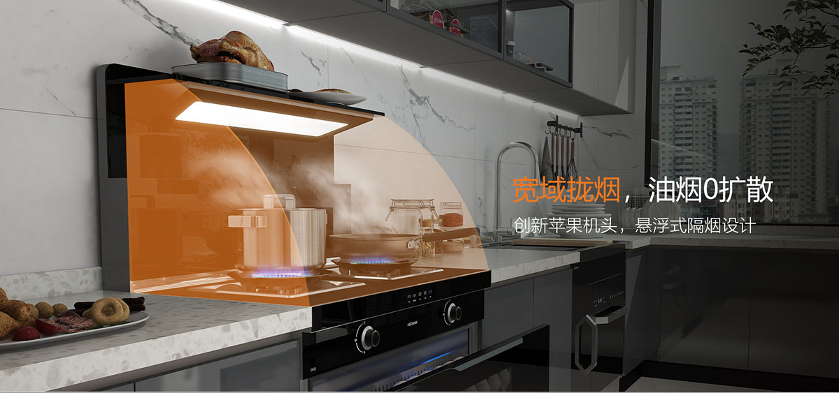懸浮式隔煙設計,寬域攏煙,油煙0擴散