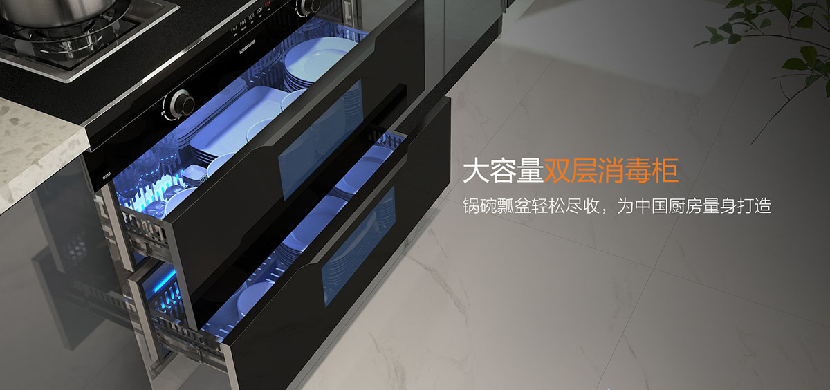 一體拉伸不銹鋼碗柜設計,收納一步到位