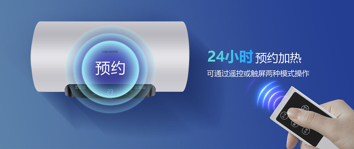 可24小時預約加熱,可通過遙控或觸屏兩種模式操作