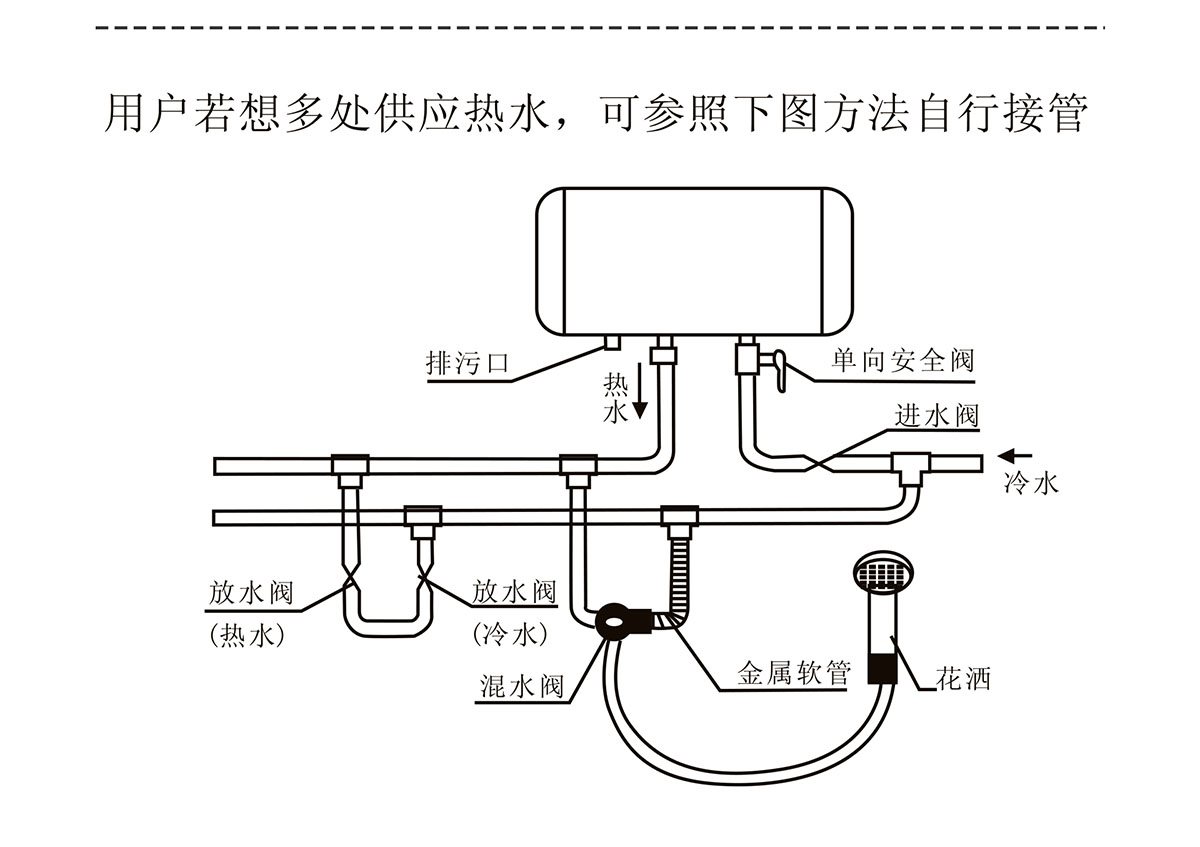 適應水壓范圍廣,熱水容量大,可同時供給多個用水點用水