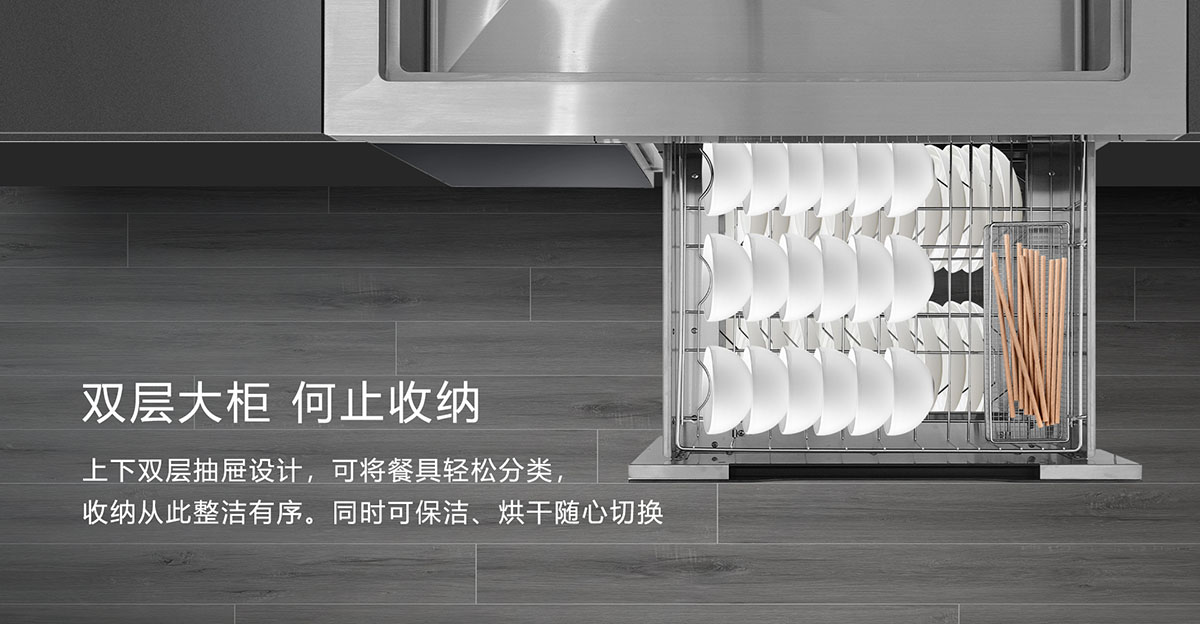 上下大雙層抽屜設(shè)計,餐具輕松分類,收納整潔有序