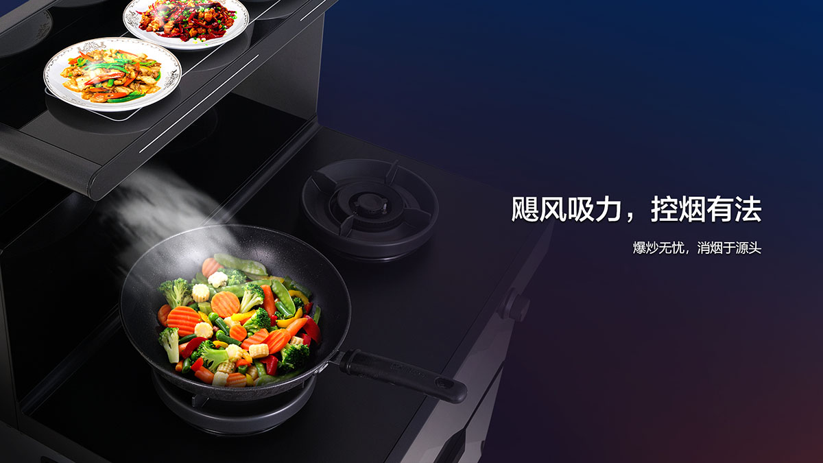 創新蘋果機頭,懸浮式隔煙設計,油煙0擴散