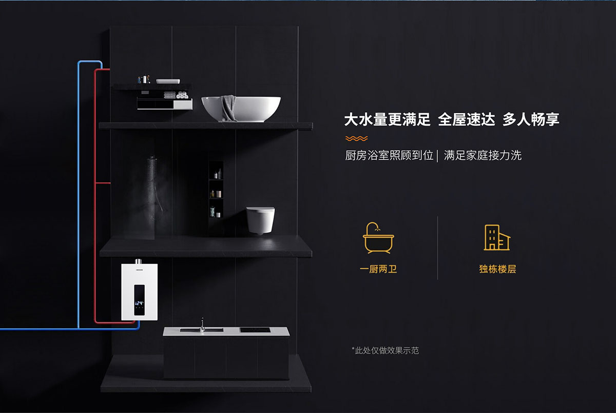 • 分段燃燒技術,水溫調節范圍大,水溫調節速度更快