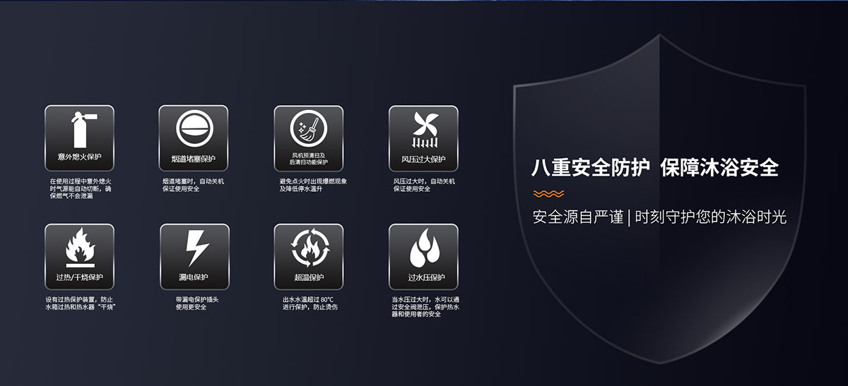 • 安全排氣裝置,當意外停電、煙道堵塞時自動關閉燃氣
