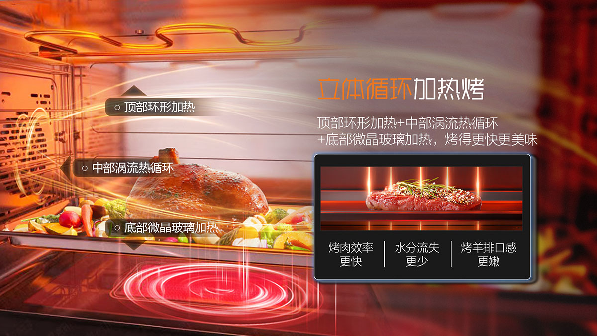- 3D澎湃蒸,立體循環(huán)烤,無(wú)油空氣炸,食物更美味