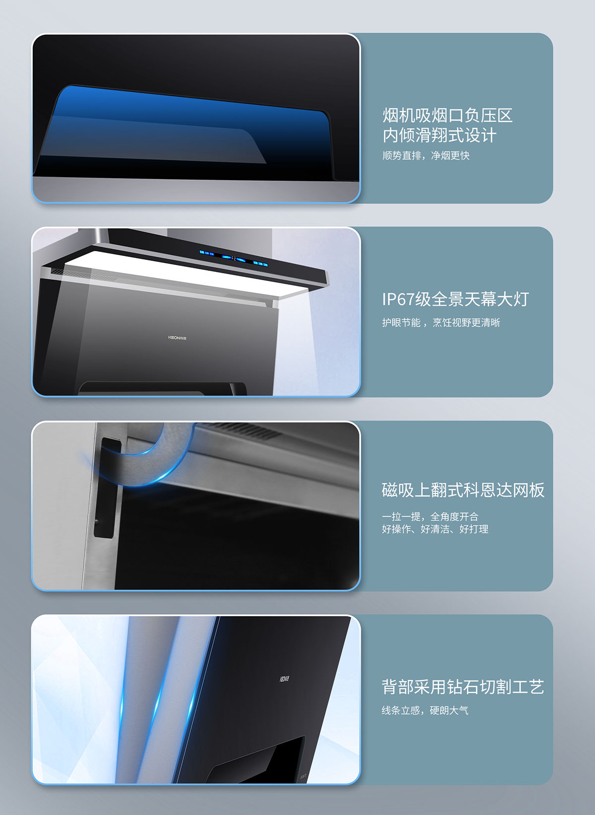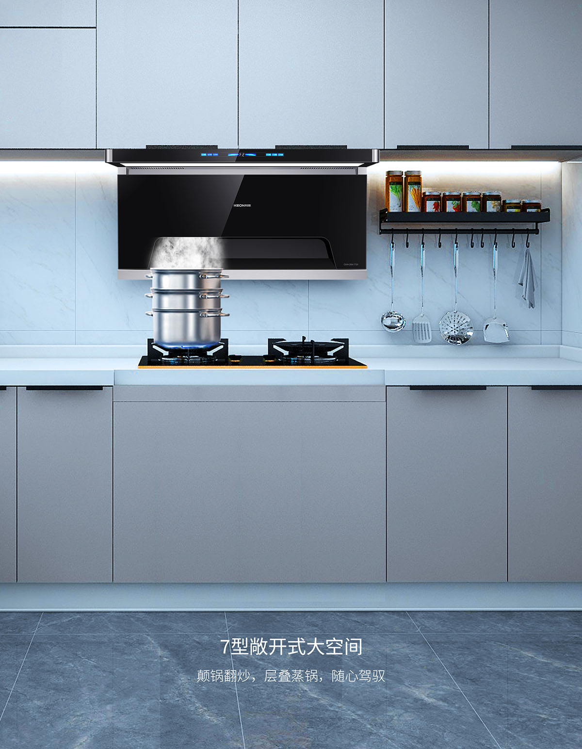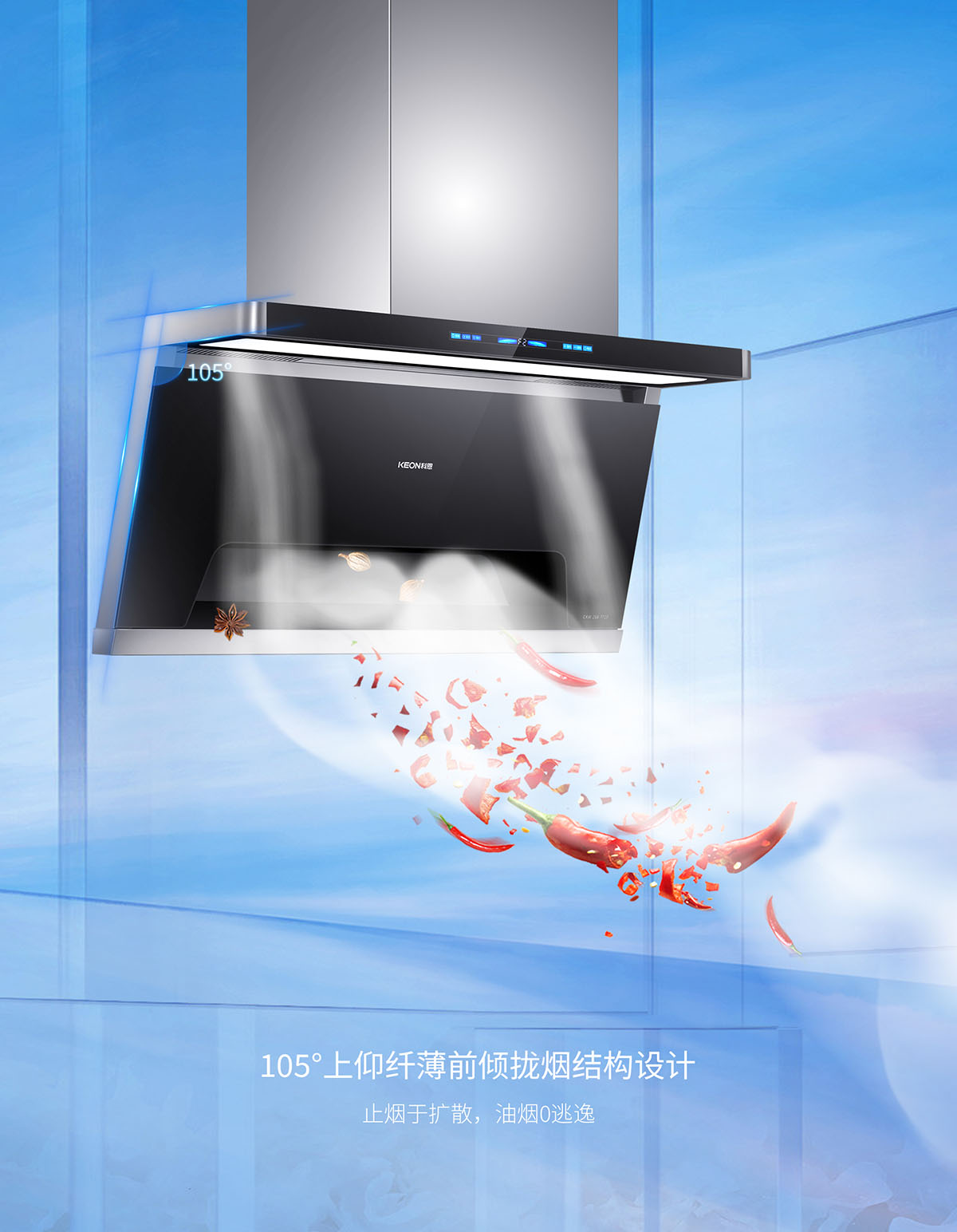 105°仰角攏煙設(shè)計,瘦身大空間,翻炒不碰頭