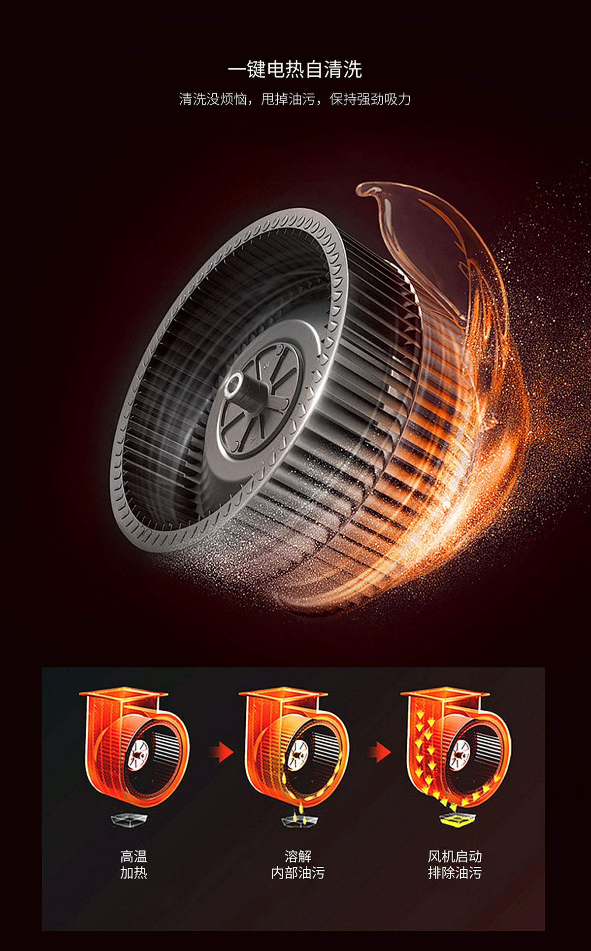 電熱自清洗,甩掉油污,保持強勁吸力