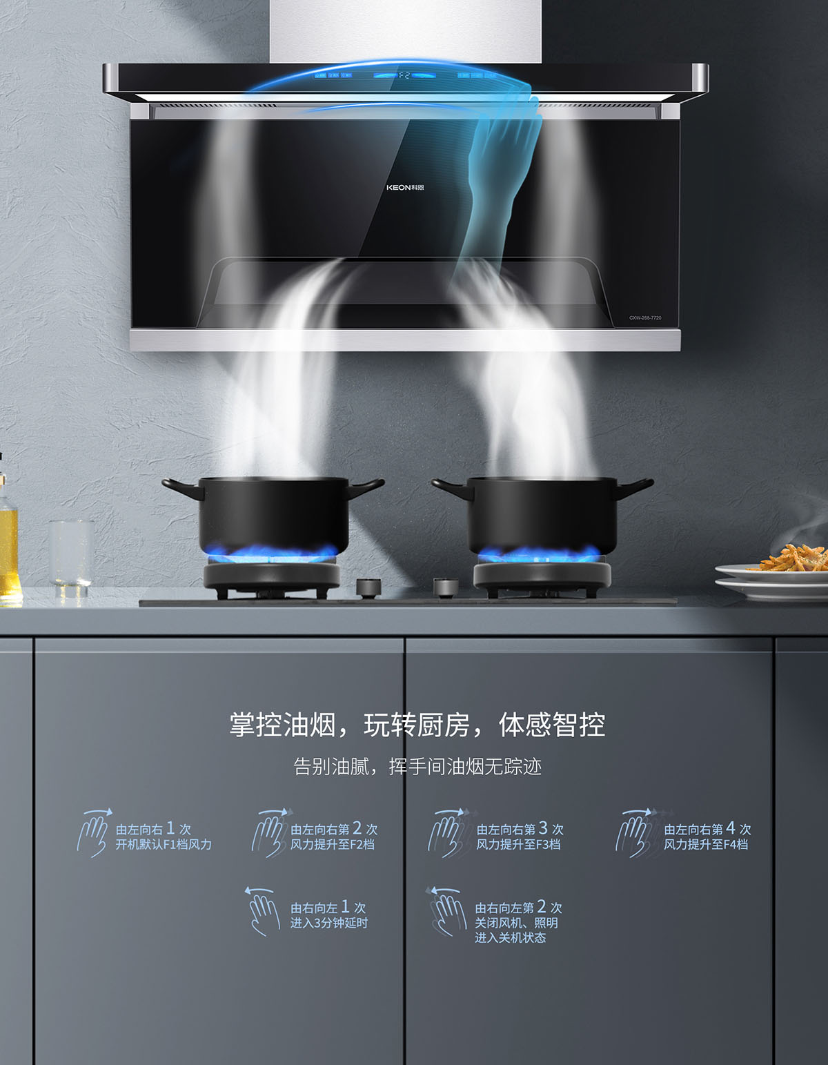 體感智控,揮手間油煙無蹤,杜絕油膩