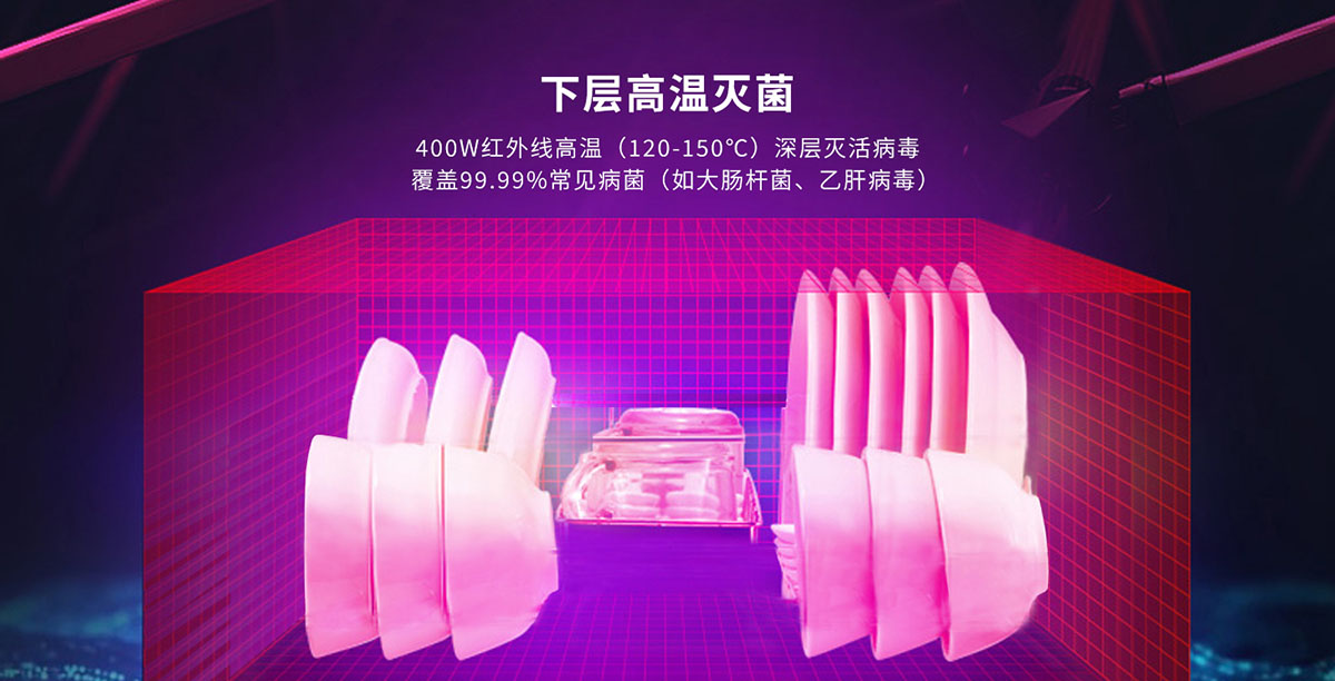 - 下層遠(yuǎn)紅外高溫滅菌,消滅99.99%常見病菌