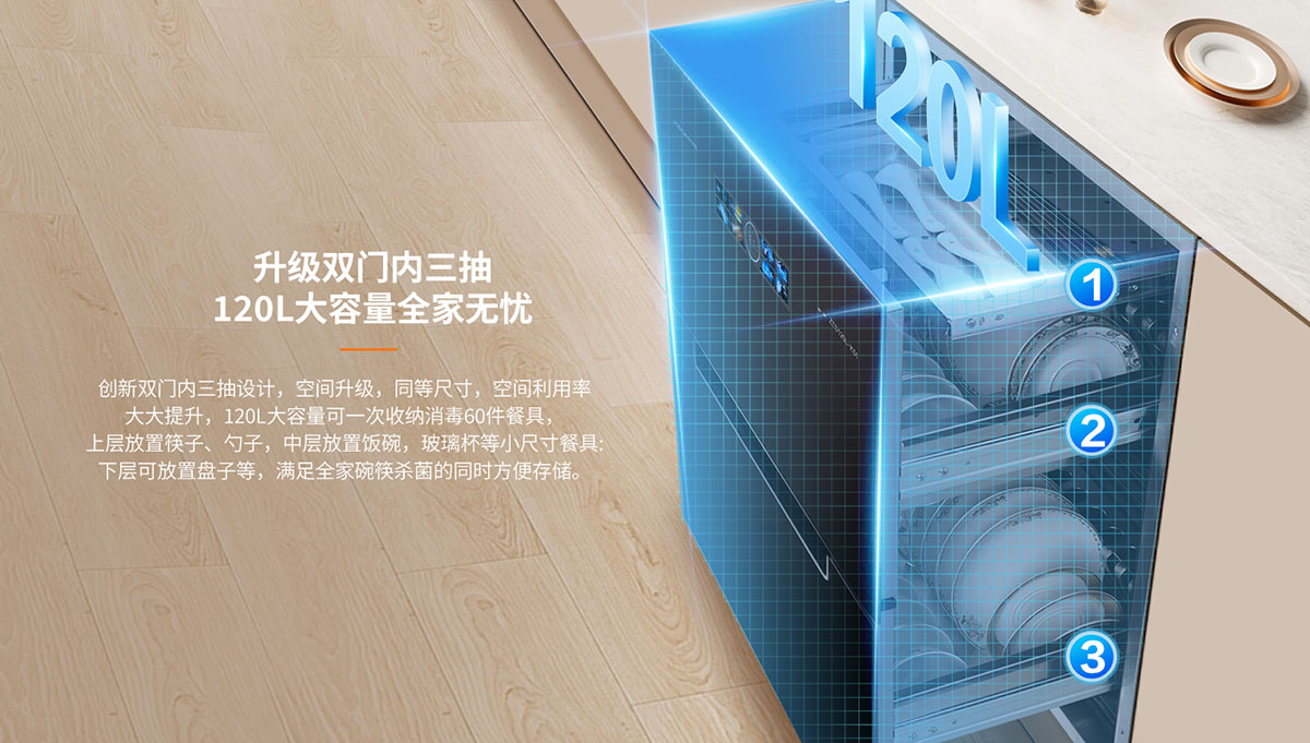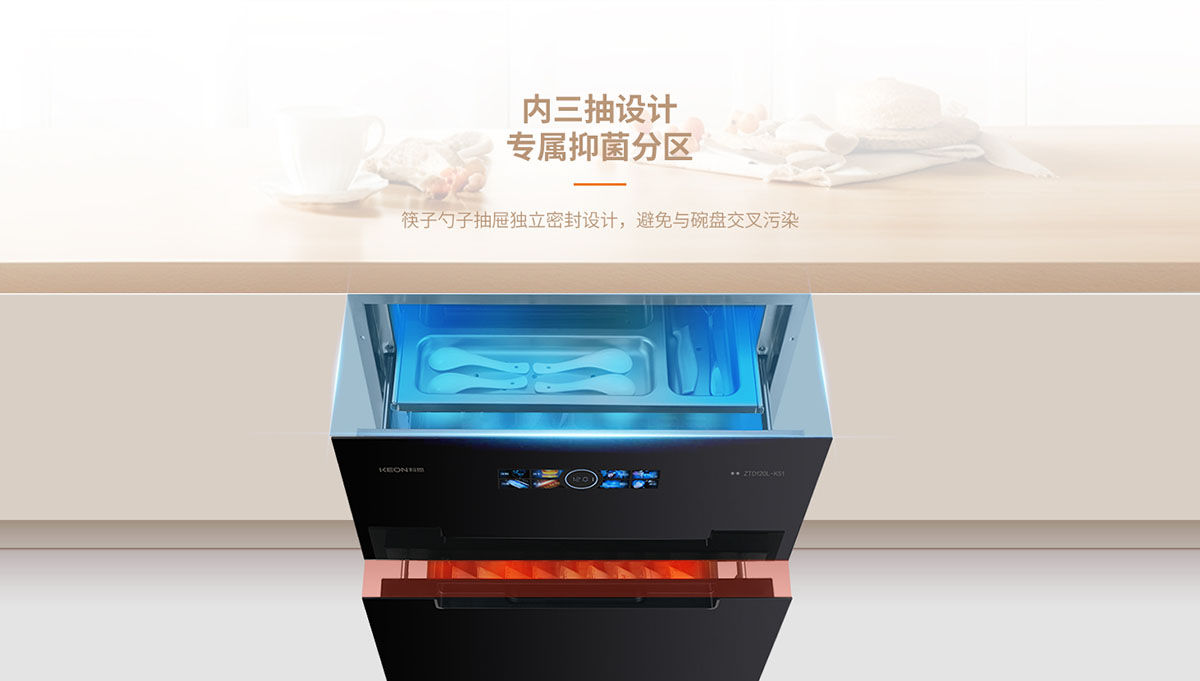 - 內(nèi)三抽專屬抑菌隔層,避免餐具交叉污染