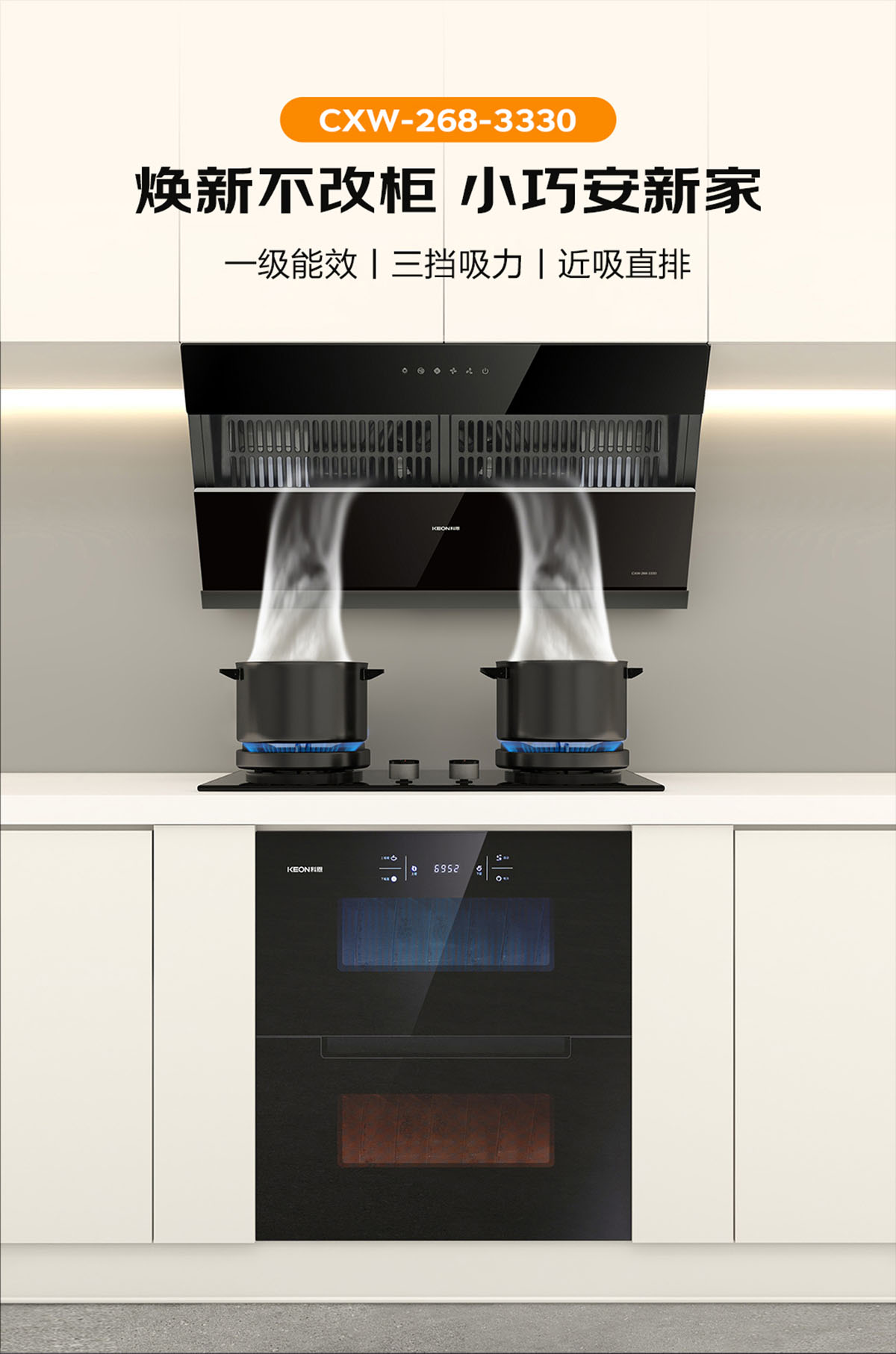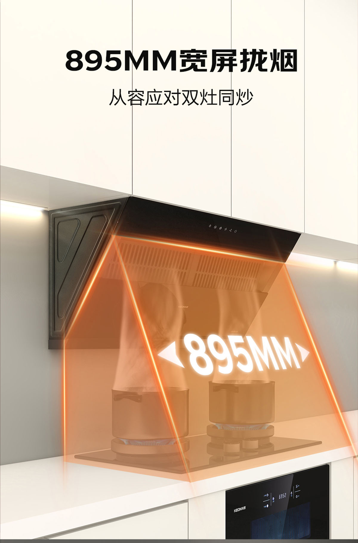 895MM寬屏攏煙,雙灶同烹,從容應對