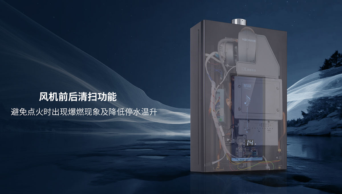 ⻛機前后清掃功能,避免點⽕時出現爆燃現象及降低停⽔溫升