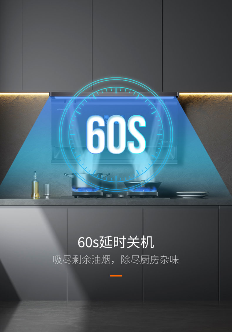60s延時關機吸盡剩余油煙,除盡廚房雜味